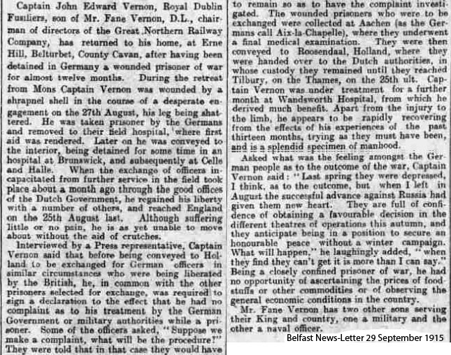 1919 Feb 4 Appointed Adjutant 3rd E. Dub. Fus.—Capt. J. E. Vernon, R.Dub. Fus,