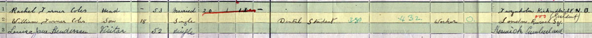 1901 census Living in a Boarding House in Cumberland with his mother
