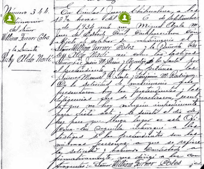 1934 Sep 6. Married in Juarez, Chihuahua, México (Mexico) Spouse: Ruby Aldo Nadi