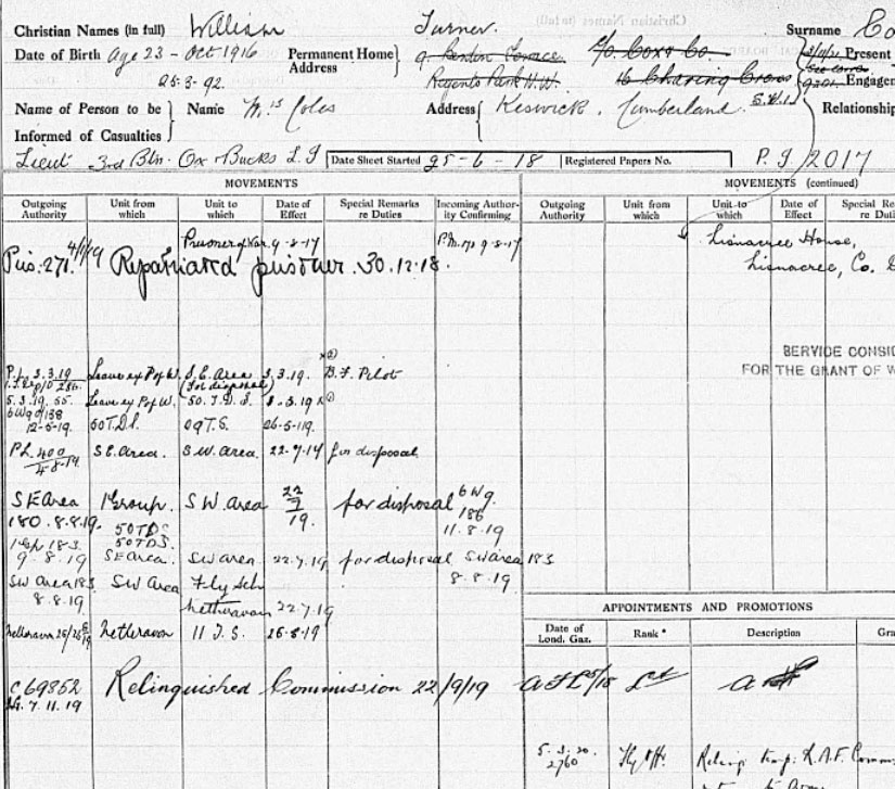 1939 Dec 10. The undermentioned to be Lts. : — Lt. William TURNER-COLES (111023), Oxf. & Bucks. L.I.