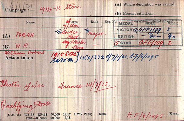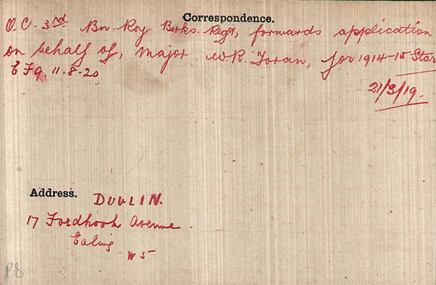 1919 Award of OBE to Major W R Foran, 49 S Circ Rd, Dublin