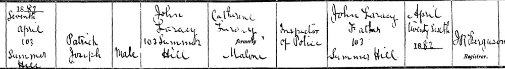 1882 Mar 7. Born Dublin, Ireland. Son of John and Catherine (nee Malone)