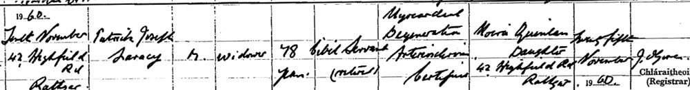 1960 Nov 10. Died Dublin. Buried Glasnevin