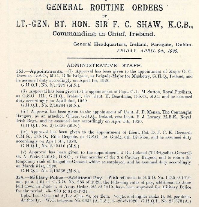1922 A Military MBE awarded. Of 42 Highfield Rd, Rathgar , Dublin ( I don't think this is a new award, just the presenting of his MBE from much earlier)