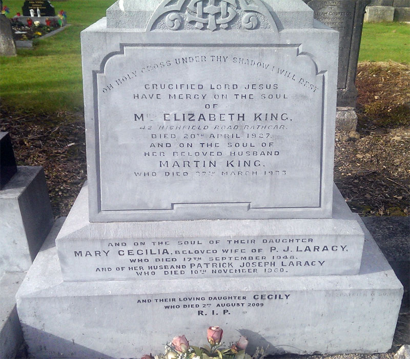 He is survived by his daughters – Mrs Ignazio Silone, Rome (whose husband is the well-known writer). Miss Cecily Laracy, Dr. Moira Quinlan and Mrs. Eithne Kavanagh, Dublin.”