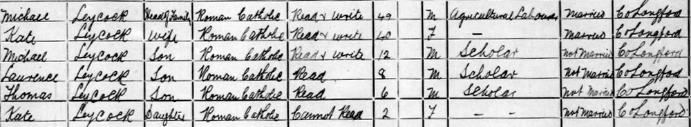 1911 census at Ledwithstown, Longford
