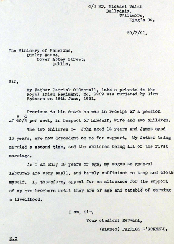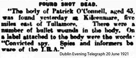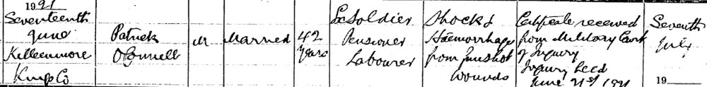1921 Jun 17 Shot in Co Offaly. Catholic ex-soldier