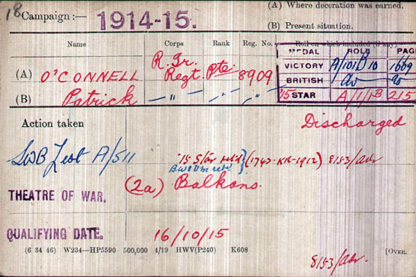 1915 Oct 16.Landed in Balkans with R Irish Regt.