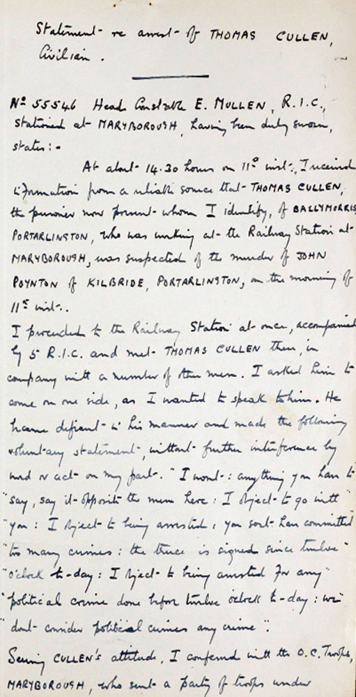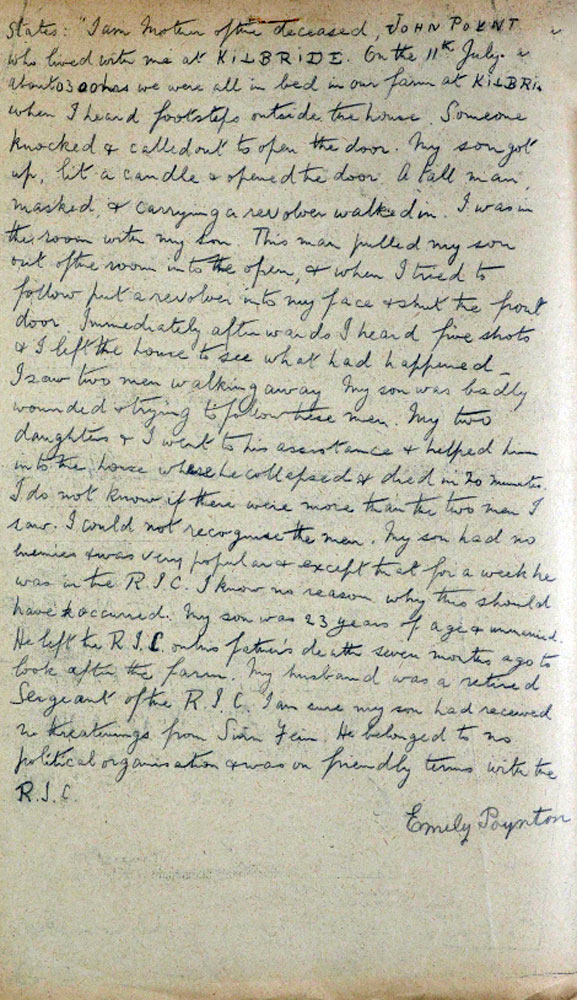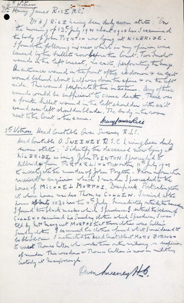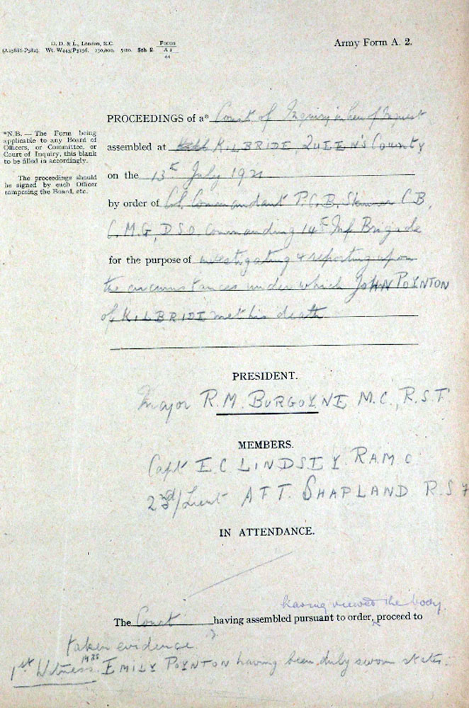 TNA File Death of John Poynton; 11th July, 1921; Kilbride, Portarlington, County Laois.