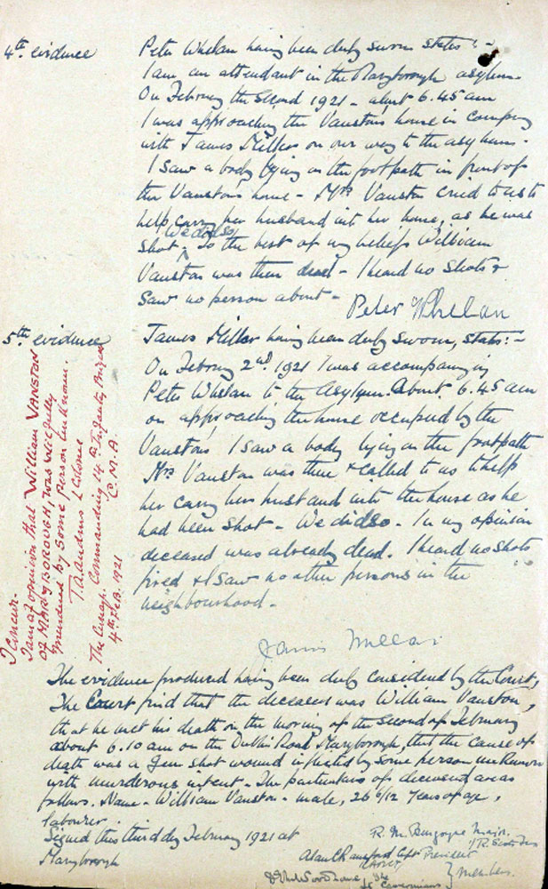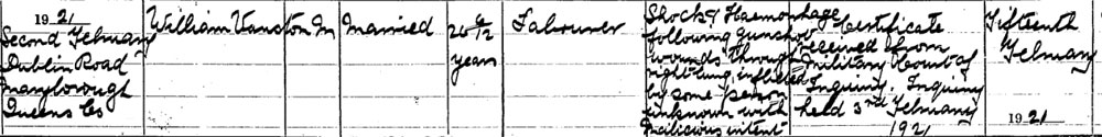 1921 Feb 2 Shot Marybourough. Shot because the IRA had found out that he was going to join RIC