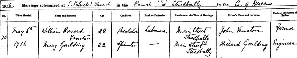 1911 census Living in Stradbally, Queen's Co