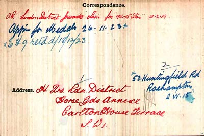 1919 Feb 10 Biggs has an address "Horse Guards Annexe, Carlton House Terrace, London SW1" in 1919 which I am fairly sure is the Spy School