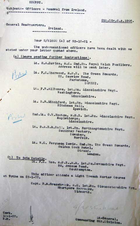 1922 May 3. Green Howards. Lt. W. C. Ferguson-Davie is seed, for service with the Tank Corps.