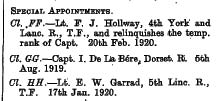 1920 Sept 26. Intelligence.—Capt. E. W. Garrad, late 5th Lincoln. R., T.A., to be Capt. 16th June 1922, with seniority 26th Sept. 1920.