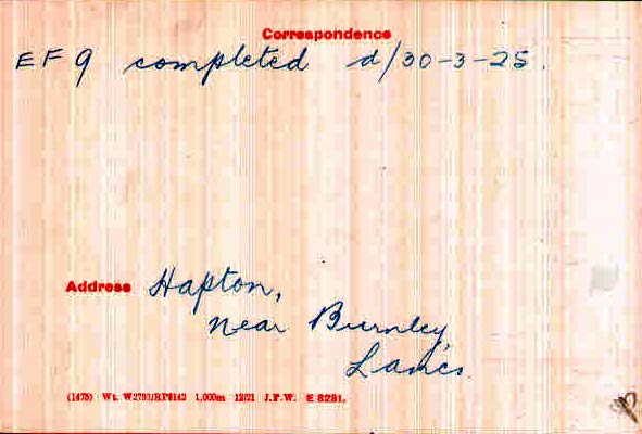 1911 census living at 77 Manchester Road Hapton. It would appear that his mother remarried in 1907. John Victor is working on his own account as an Architect and Surveyor