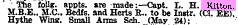 1916 May 30 Transferred to Trench Mortars, L. H. Kitton, retaining the temp, rank of Lt., from R. Scots.