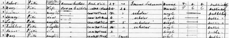 The family remained in Dublin. His son Robert Pike (Junior) married Catherine Thomas and they lived in Whitehall until their deaths in 1960 and 1990 respectively, Their children all resided in Dublin as well and had families. Robert Pike (Junior) also enlisted in the British Army during the Second World War and fought at Dunkirk, and his health deteriorated after the war and was the main factor in his untimely death aged 51.