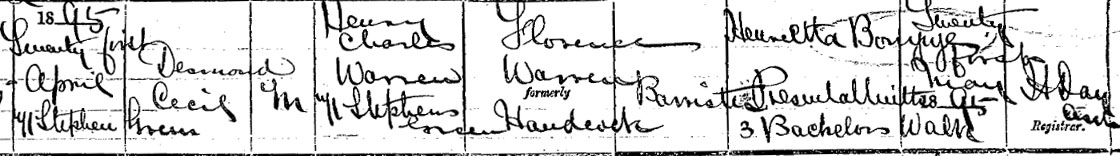 1895 Apr 21. Born 71 Stephens Green, Dublin