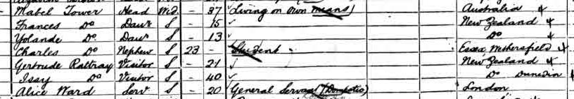 1901 census living at 36 Stanford Rd, Kensington He is a student. The head of household is his widowed aunt.