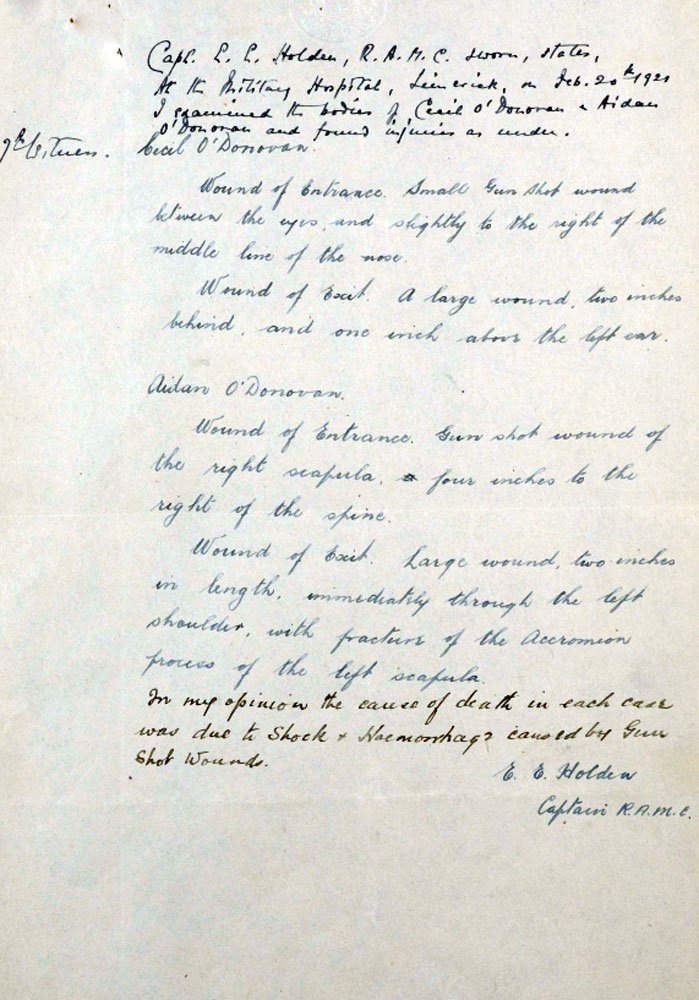 Aidan and Lawrence Donovan were killed immediaely. Brendan escaped , and Thomas put up his hands and surrendered.