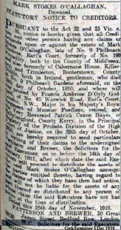 1901 Oct 10 Died in London of pneumonia. He left just over £11,000
