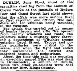 1921 Jun 21. The IRA executed a Robert Pike who they believed had informed the authorities of their movements in preparing the ambush. Robert Pike appears to have been executed near Tolka Bridge. Mr Pike was found dead, leaving a widow and several children.
