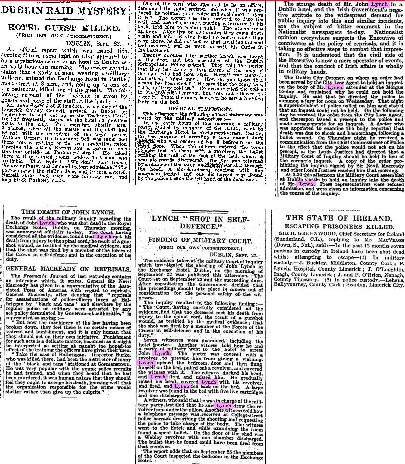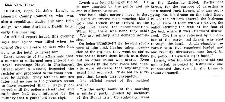 - A group of 12 soldiers entered the Exchange Hotel in Dublin at probably 3 am on 23 Sep 1920