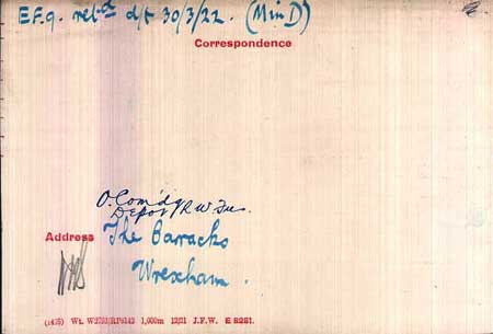 1922 Jan 12. Recommendation to get him out of Ireland. His address was Oaklands, Wigton, Cumberland