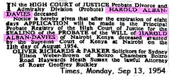 1938 Feb 8, Decree nisi in divorcing his wife on the grounds of her miconduct with a Col Brewer of Indian Army