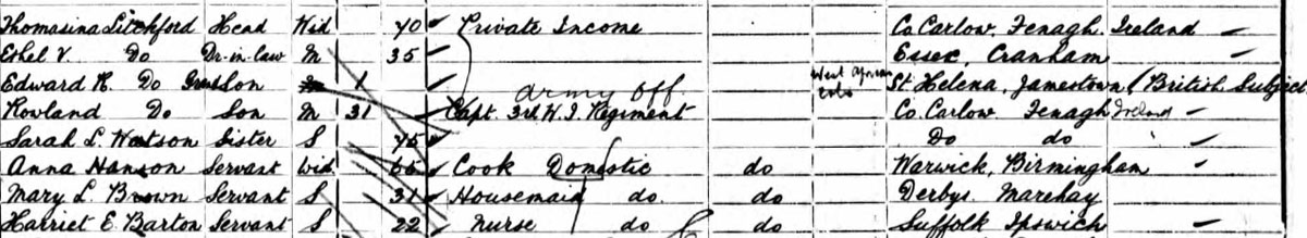 ROZIER, Faith Blanche Beatrice | Nurse Housemaid | Single | F | 14 | 1897 | Servant Domestic | Suffolk Hitcham | |||