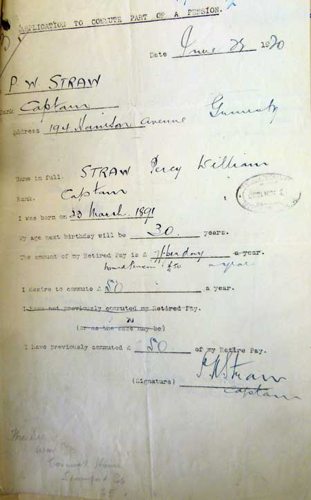 - 1920 Jul 5. He writes with an address 194 Hainton Av, Grimsby about commuting his pension for a lump sum.