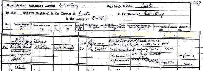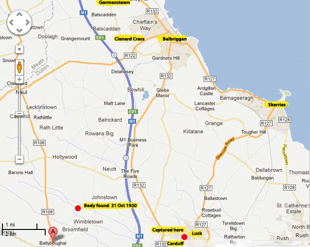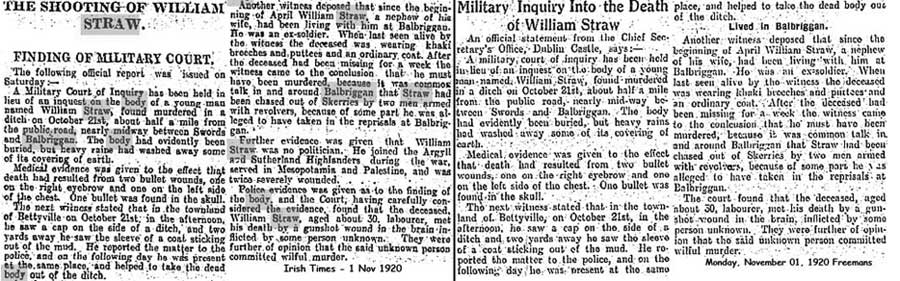 - One source says Straw was picked up and taken to McNally's Barn on the Balrothery Rd (I cannot find that barn). Here he was courtmartialed by North Dublin Brigade and shot.