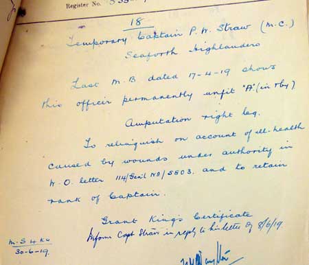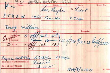 - 1918 Jan 8. Citation for MC "T./Lt. Percy William Straw, Sea. Highrs.
