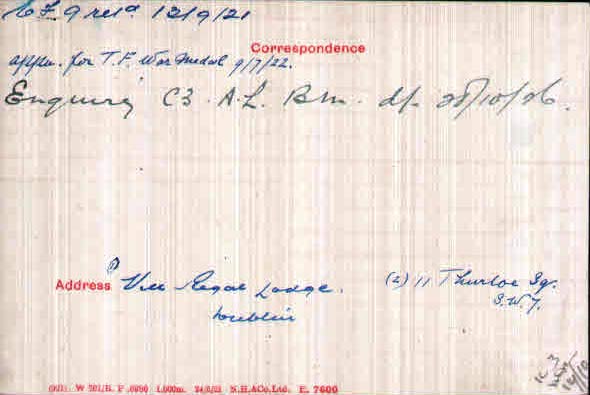 ADC to the Lieutenant-General and Governor-General of Ireland 1921; OBE 1922 He relinquishes the appointment 6 Dec 1922
