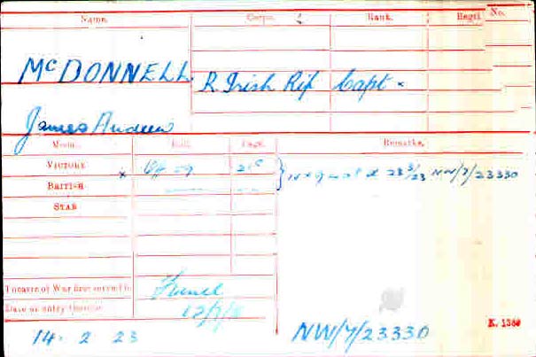 1916 Apt 11 . R. Ir. Bif. James Andrew McDonnell to be temp. Capt. 1