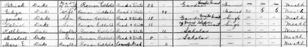 1901 census at Warrenstown , Killeen, Meath
