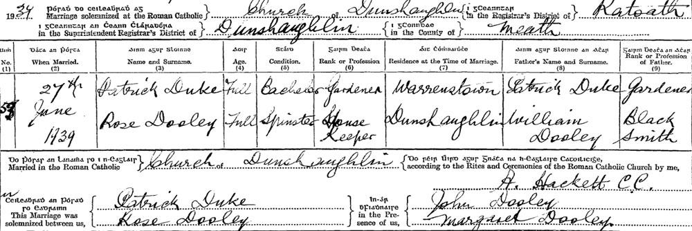1939 Jun 27 Marries locally to Rose Dooley