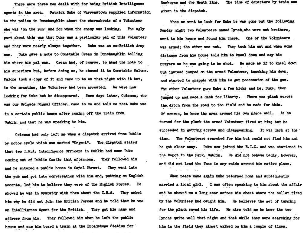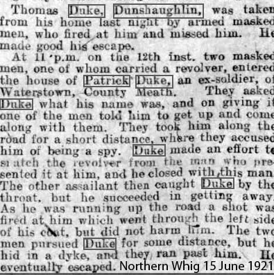 He escaped the attempt to shoot him. Joined the RIC and later returned home and married locally. Informer, rather than spy