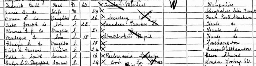 1911 census - living with his parents at "Shirley", Seymour Road, Wandsworth