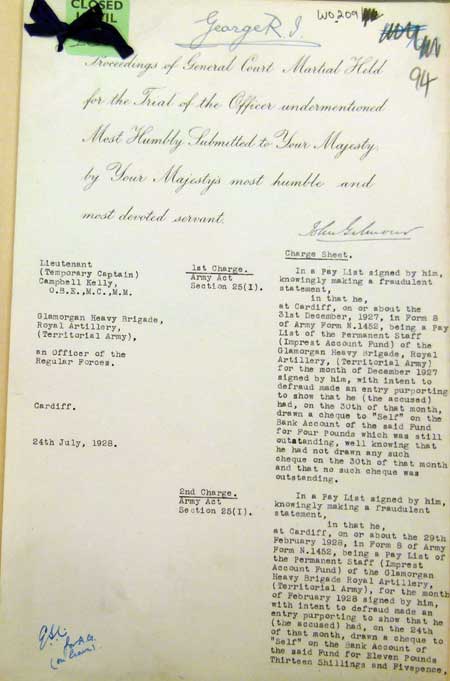1928 Jul 28 he was courtmartialed over a cheque fraud