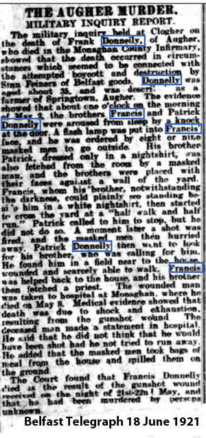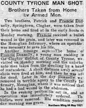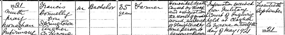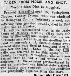 1921 Shot by IRA in Springtown, Co Tyrone