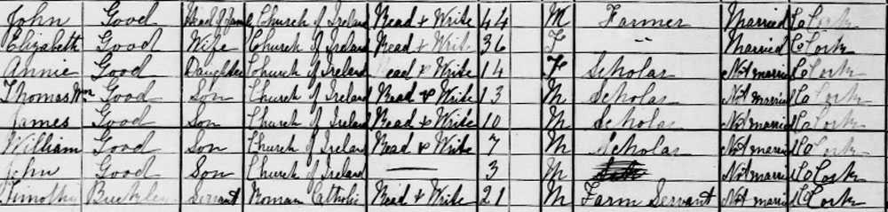 1901 census at Kilclarra, Knockroe, Cork)
