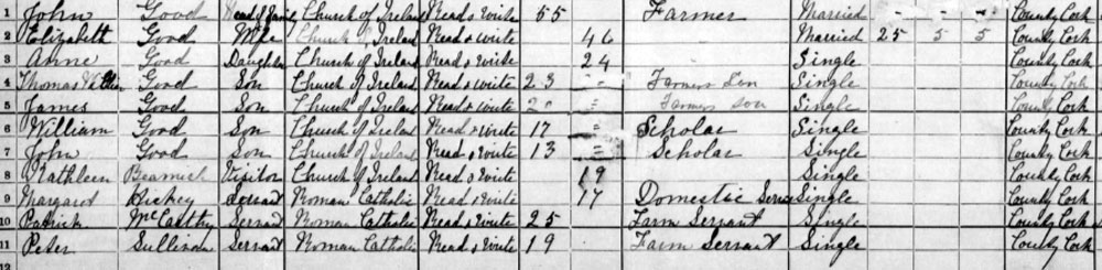 1911 Census at Barryshall , Timoleague, Cork