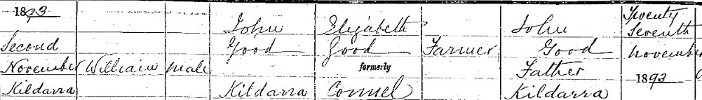 1893 Nov 2. Born Kildarra, Cork