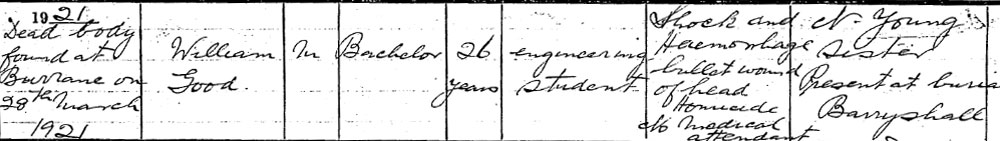 1921 Nov 28. Killed with a blow to the head