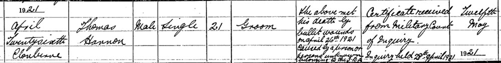 Thomas Hannon was a land agent for C.J. O’Rourke, near Clonbeme, Galway. The local IRA believed that he was a police informer.