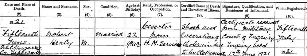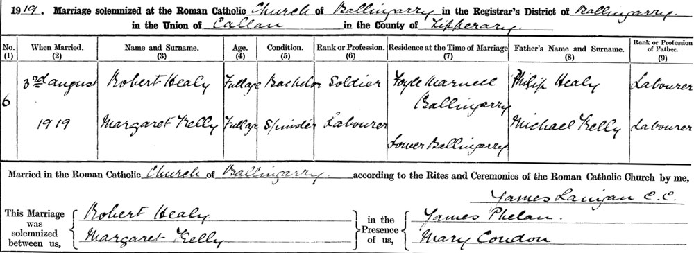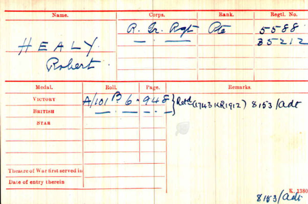 1919 Mar 6. Re-enlisted in R Irish Reg as 7110456 at Clonmel