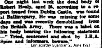 1916 Nov 7. Listed as a Deserter in Police Gazette. 5588 in Royal Irish Regt, enlisted 27 Apr 1916, born Ballingarry, Tipperary. Deserted 21 Oct 1916 at Queenstown