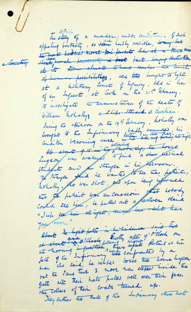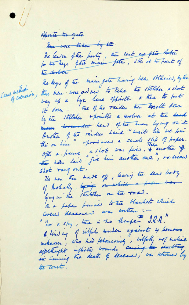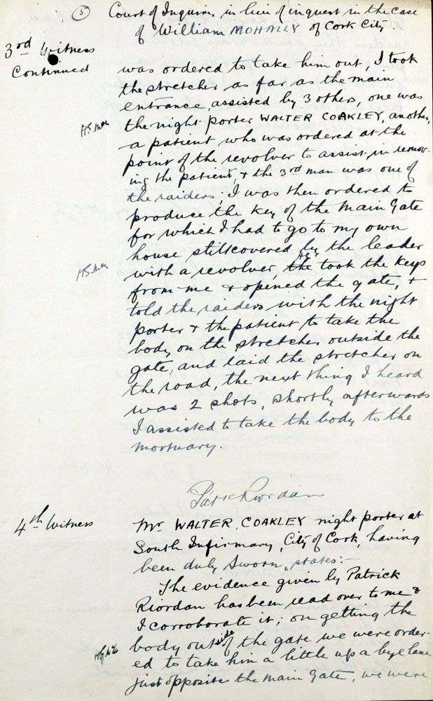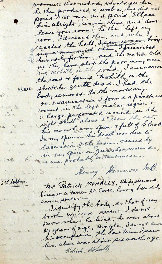 Witness Statement On 21st February 1921, Mulally (sic), a civilian spy, was shot on the Blackrock Road.