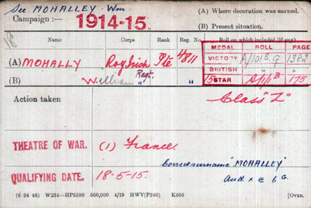 Mohally had acted as a recruiting agent for the British Army in the early stages of the war.